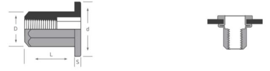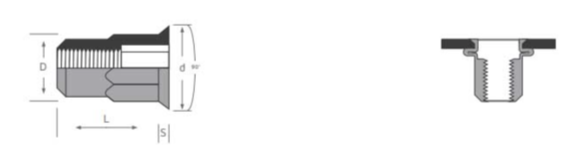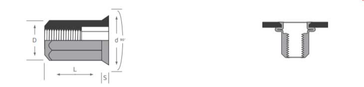Probablemente uno de los sistemas de fijación y montaje más utilizados en la industria. Esta especialmente adaptado para montar sobre chapas de espesores finos hasta 3mm habitualmente, donde mecanizar una rosca "fuerte" es un problema debido al poco espesor de material.